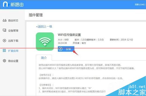 2、在瀏覽器輸入網址http://192.168.99.1打開newifi mini的管理界面,在擴展應用里面找到可以設置WiFi信號強度的插件。