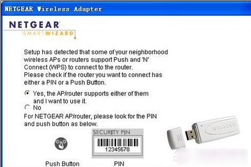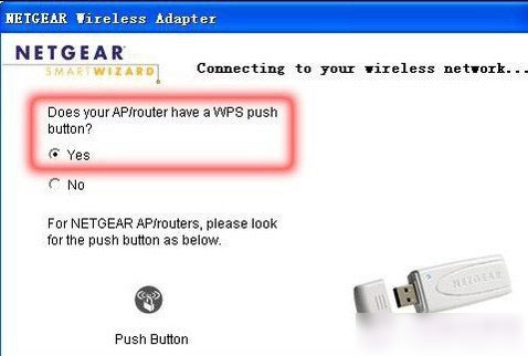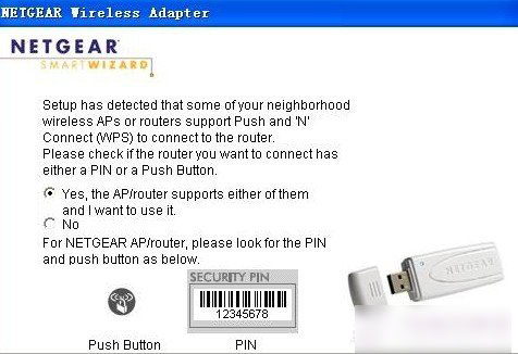 WPS“一鍵加密”法實現方法非常簡單,前兩步設置與輸入PIN碼法設置相同,即打開無線網卡的應用程序,選擇需要接入的無線網絡,然后選“Yes”。操作如下圖所示: