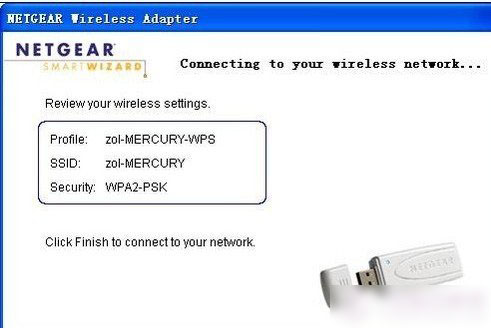 之后我們就指需要點擊“Finish”,就可以享受安全的無線網絡連接了,下圖是連接后的界面。