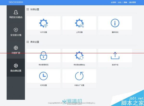 360路由P1雖然是由磊科生產的,但系統方面還是自家的360sOS系統,系統版本是0.7.0.18。官方提供網頁和手機客戶端(暫時只有 Android 版)。