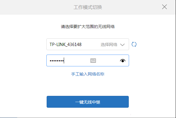 6.點擊“下一步”就出來了中繼模式的設置頁,路由會自動掃描無線信號。