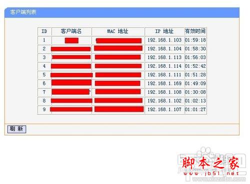 來到無線路由器配置界面,我們先來點擊“DHCP服務器”選項,在這里我們可以設置所有可以上網(wǎng)IP地址段,想要詳細了解有哪些IP地址正在被使用,我們可以點擊“客戶端列表”,這里詳細的記錄了所有正在使用這個路由器上網(wǎng)的IP地址和對應的電腦信息。
