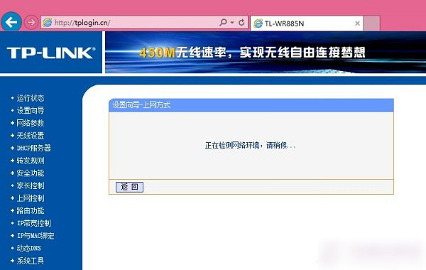 如果選擇【讓路由器自動(dòng)選擇上網(wǎng)方式】的話,會(huì)自動(dòng)檢測(cè)您的上網(wǎng)方式,我們等待其檢測(cè)完成即可,如下圖所示。