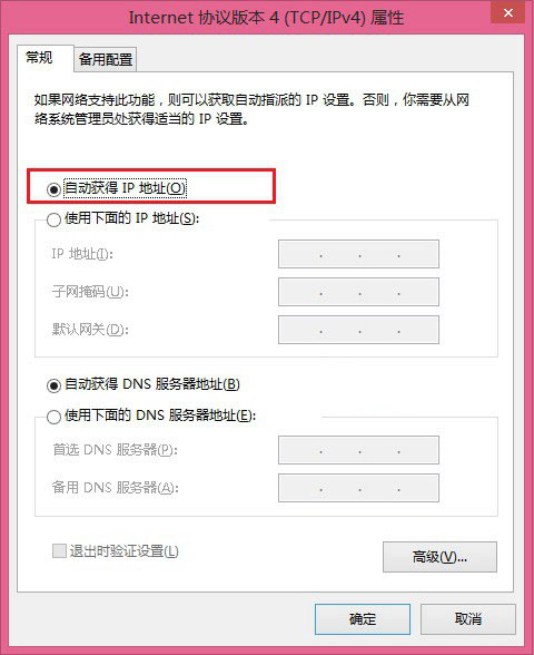 2、如果此前設(shè)置過電腦本地IP地址的朋友,請(qǐng)先將IP地址改為自動(dòng)獲取,具體設(shè)置教程,請(qǐng)見教程設(shè)置(如果此前已經(jīng)是自動(dòng)獲取,則無需設(shè)置):Win8如何設(shè)置IP Win8本地IP地址設(shè)置教程。
