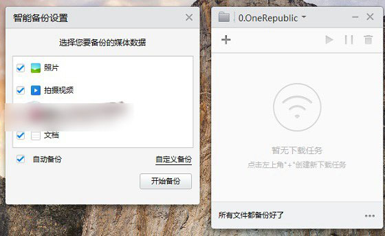 3、之后,點(diǎn)擊底部的開(kāi)始備份就可以了,這樣就可以將電腦上的文件,備份到小米路由器,如下圖所示(目前僅支持帶有硬盤(pán)的小米路由器,小米路由mini暫時(shí)不支持)。