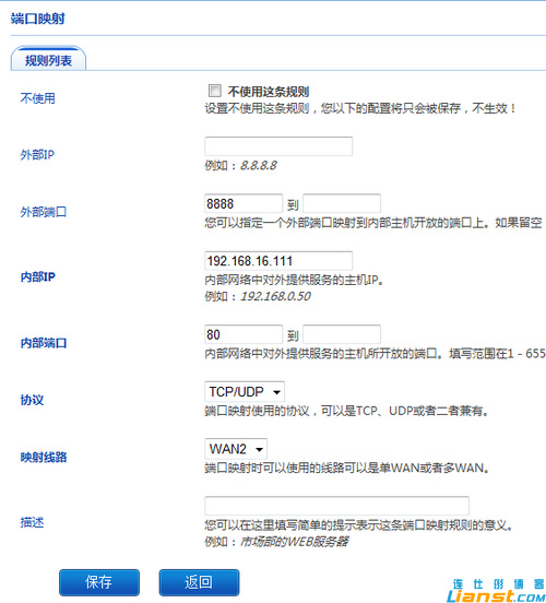 解決方法:指定策略路由將3臺DVR主機使用WAN2(聯通出兩口)作為默認出口,并映射端口!