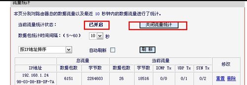 重新開啟“流量統計”之后,多次點擊“刷新”按鈕,來對比流量。