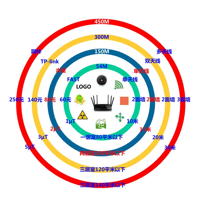 很多朋友把這個(gè)M誤解成了米的單位,有一次一個(gè)顧客來(lái)到我店里,說(shuō)要買個(gè)300米的路由器,我當(dāng)時(shí)就傻了,我問(wèn)他是不是買300兆的,他說(shuō)他也不懂,還有回一個(gè)客戶來(lái)找我,說(shuō)你的路由器不是300米的么?怎么隔了2個(gè)房間就沒(méi)信號(hào)了,連20米都不到?這里我要著重說(shuō)下路由器的這個(gè)M到底是什么意思,用行業(yè)術(shù)語(yǔ)講或許大家聽不明白,那我就講通俗點(diǎn)其實(shí)這個(gè)M就是指的路由器對(duì)數(shù)據(jù)的吞吐量,數(shù)值越大吞吐量則越大,下回千萬(wàn)別把M再當(dāng)成米來(lái)誤讀啦,不然要鬧出笑話的。
