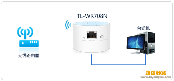 臺式機需要接入無線網絡,但是沒有無線網卡。Mini路由器工作在Client模式下相當于無線網卡,可以幫助臺式機接入網絡。