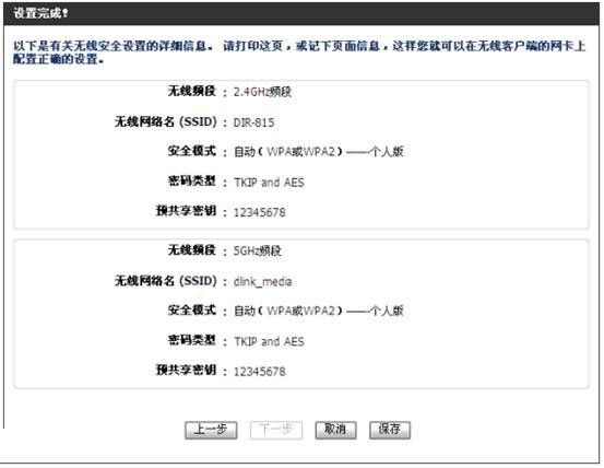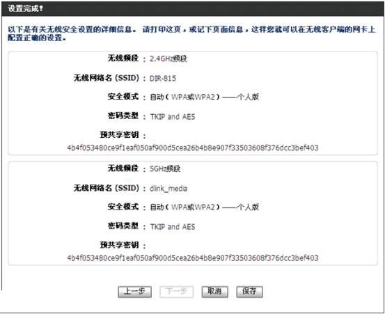 1、如果選擇自動設(shè)置,概述窗口將顯示設(shè)置,記下安全密鑰,并將此密鑰輸入無線客戶端,單擊保存來保存你的設(shè)置。