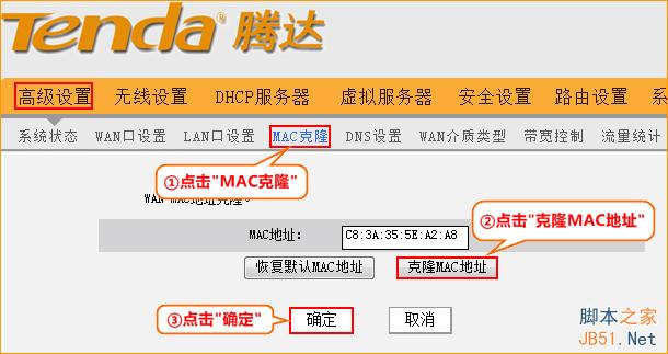 4.點擊“MAC克隆”-“克隆MAC地址”-“確定”