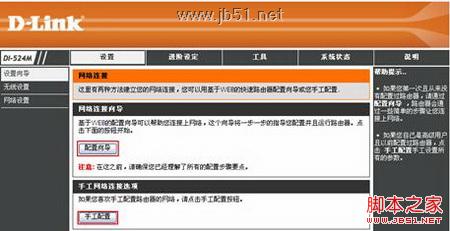 從這個(gè)界面可以看到,可以通過(guò)兩種方法對(duì)路由器進(jìn)行網(wǎng)絡(luò)連接的設(shè)置:一是使用配置向?qū)В鞘褂檬謩?dòng)配置。下面針對(duì)配置向?qū)У氖褂眠M(jìn)行說(shuō)明。