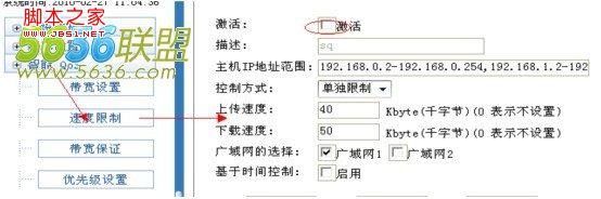 如下圖所示,當然WayOS也可以對設置對單個IP地址,或者是一段IP地址的限速,當然所有的設置都必須激活才生效。