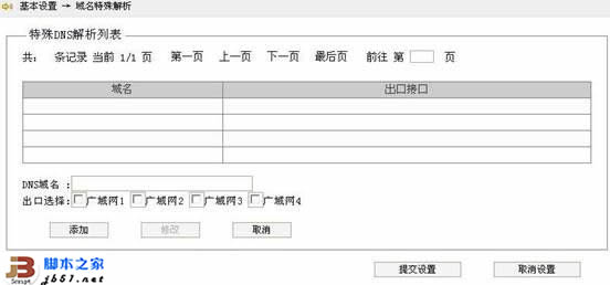 二、域名特殊解析,H3C路由基本設置中有一項域名特殊解析功能,主要是用來將一些特定的域名綁定到指定的線路上出去,進入H3C路由基本設置-域名特殊解析,打開基本設置-域名特殊解析,將出現如圖所示列表。