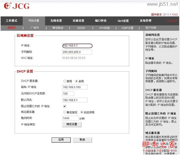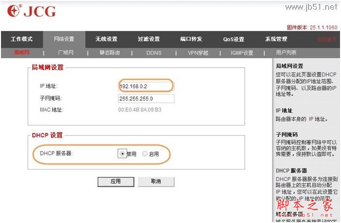 4.網(wǎng)絡(luò)設(shè)置——局域網(wǎng)——局域網(wǎng)設(shè)置(IP地址改成和主路由器在同一個(gè)網(wǎng)段,但要改一下IP地址的后一位)——DHCP類型(禁用) 應(yīng)用保持設(shè)置
