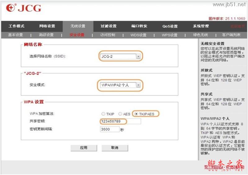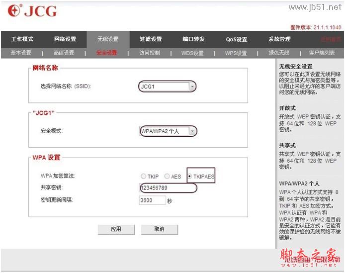 3.安全設(shè)置(安全模式,加密算法,密碼選擇和主路由器一樣)
