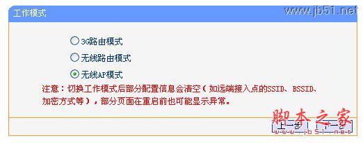 步驟5:根據需要選擇AP的工作模式,此例選擇“接入點模式”,其他模式參照700N設置模式,如下圖所示。