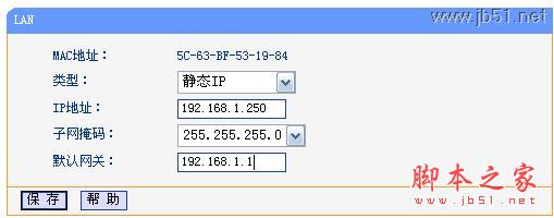 注意事項: TL-WR703N默認管理IP地址“192.168.1.1”,所以必須將TL-WR703N的LAN口IP地址設置為與有線局域網中所有設備都不相同的IP地址,以防止出現IP地址沖突的情況(一般情況下不需要修改)。可以在菜單“網絡參數”——“LAN口設置”,修改IP之后,點擊“保存”,路由器自動重啟。如下圖所示。