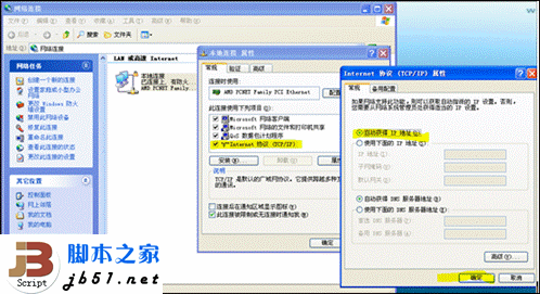 右鍵單擊網(wǎng)上鄰居-屬性-本地連接—屬性—雙擊cp/ip協(xié)議-自動獲取ip地址。