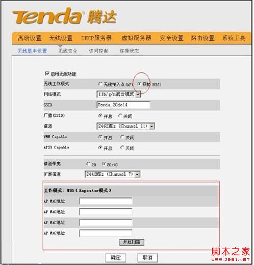 最后要說明一下,WDS功能需要兩臺騰達無線路由器均支持此功能,而且SSID必須與對端騰達無線路由器的相同。