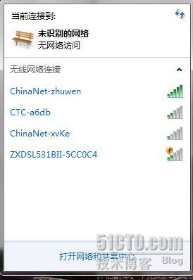 在筆記本上查看無線網絡,如圖8所示,信號最好的那個就是我的無線路由器,呵呵,連上無線路由器上就可以上網了。我用無線,妹妹用有線,各得其所。如果哪位博友有類似的ADSL貓,可以參考此文便宜行事哦。