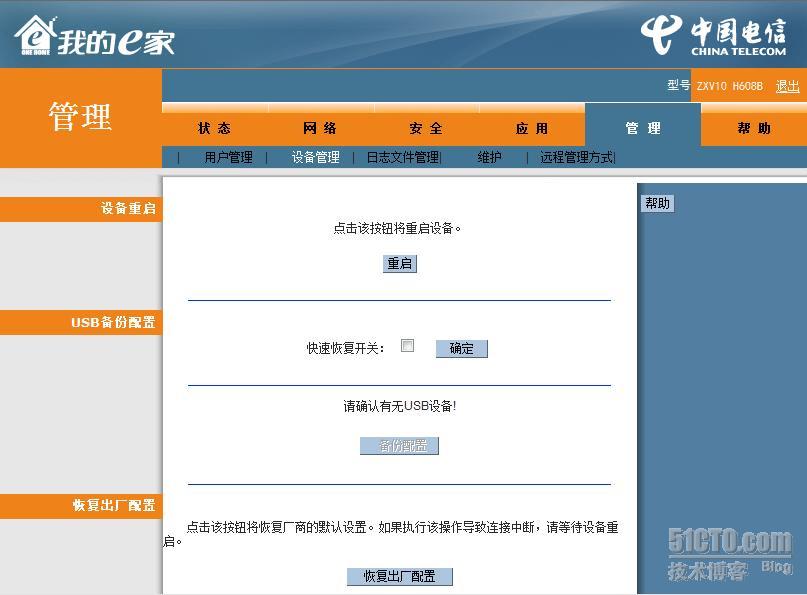 如圖2所示,登錄后我們可以發現這個ADSL貓的設備型號是中興的H608B,其實是一款無線路由器。提到這也要對中國電信贊一個,要是他們改了這個超級用戶賬號,那就真是一籌莫展了。