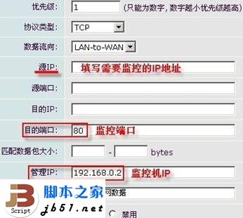 三、硬件方式是指對經過端口的所有類型的流量都進行復制監控,而一般在需要監控的主要是瀏覽網頁,瀏覽網頁所產生的流量只占很小一部分,大部分流量是由在線電影、玩游戲、視頻聊天、P2P下載等產生的,而這一部分通常不需要監控,也無法監控到有用數據,在路由上,可以設定特定協議、特定端口的流量復制到監控機上,這樣端口鏡像的效率大大提高,對路由網卡的負荷也大大減少。