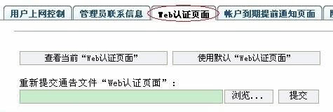 二、認證頁面 1、點擊Web認證頁面選項,可以查看、更改Web認證登陸的頁面,若要更換此登陸頁面,只需將編輯好的文件導入到路由器中即可,文件必須為.htm格式的,點擊使用默認Web認證頁面,可將之前導入的頁面恢復到默認出廠頁面。