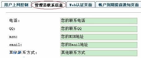選擇管理員聯系信息選項,可以自定義管理員的聯系信息,以方便用戶在網絡出現問題時方便聯系管理員,此信息在用戶登陸后可以查看到,PPPOE用戶在撥號以后需要登陸IE才能看到。
