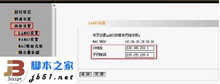 1、登陸阿爾法路由器管理界面,點擊高級設置-LAN口設置,LAN口地址默認為192.168.0.1,更改為其他地址,避免和網內設備沖突。