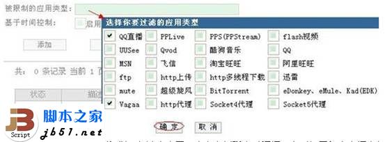 二、下面我們以一個例子還詳細說明一下,假設我們要限制IP為192.168.1.3的機器上班時間禁止使用QQLive和Vagaa等軟件。