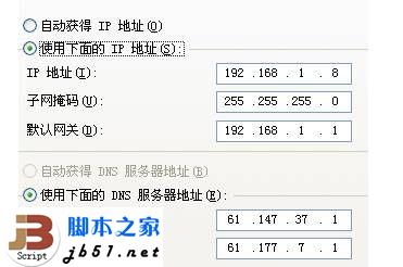 點使用下面的IP地址,在IP里面填寫自己的IP地址,子網掩碼如上,255.255.255.0,網關就是你的路由器的IP地址,一般就是192.168.1.1,下面的DNS服務器,也就是域名解析服務器的地址了。