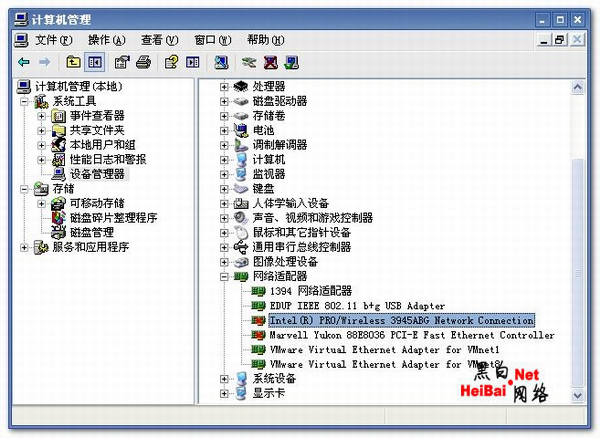 網卡配有驅動盤一張,裝好驅動后設備管理器如圖。已禁用本地連接及3945無線網卡。