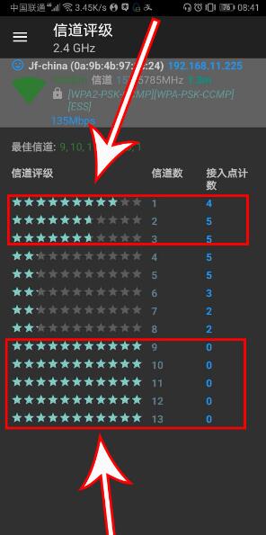 3、查看信道評級中得分較高的信道,并記錄一下。