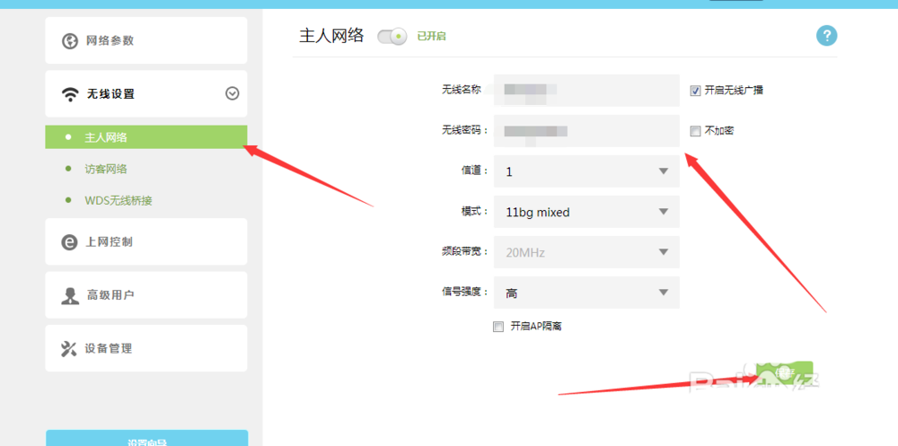 4、點擊【無線設置】,給無線網(wifi)設置名稱和密碼,然后保存。