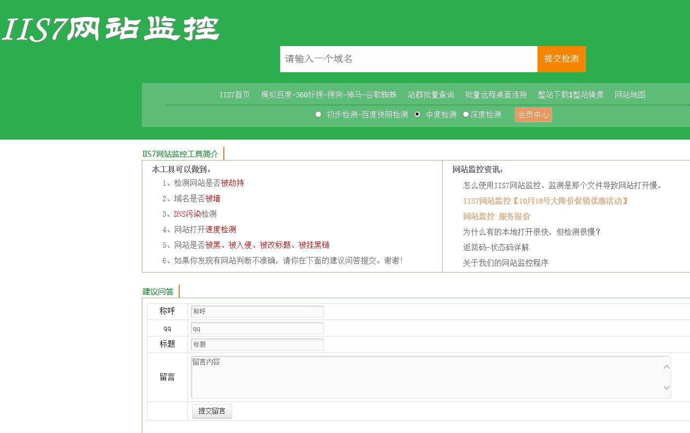 其實,DNS劫持并不是什么新鮮事物,也并非無法預防,百度被黑事件的發生再次揭示了全球DNS體系的脆弱性,并說明互聯網廠商如果僅有針對自身信息系統的安全預案,就不足以快速應對全面而復雜的威脅。因此,我們很有必要準備一個網站監控工具,幫助自己監控網站。比如說:iis7網站監控工具。