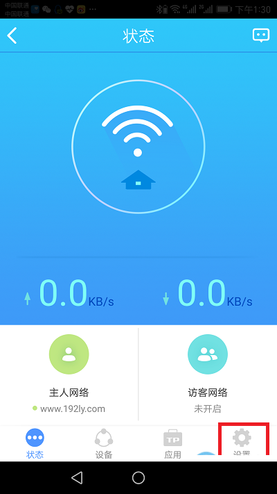 第四步、檢查設(shè)置是否成功1、手機(jī)重新連接tplink的無(wú)線信號(hào)后,再次運(yùn)行手機(jī)中的TP-Link APP管理軟件,然后點(diǎn)擊“設(shè)置”選項(xiàng)打開
