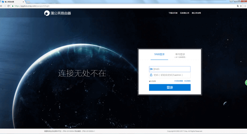 之后系統會自動跳到 https://pgybox.oray.com/passport/login