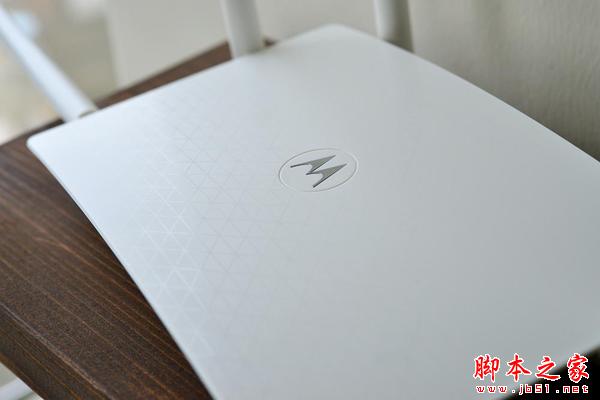 摩路由M2的表面擁有高光的紋理,在光線下能反射出三角形的圖案,另外摩托羅拉的Logo在路由器中心位置,滿滿的情懷。