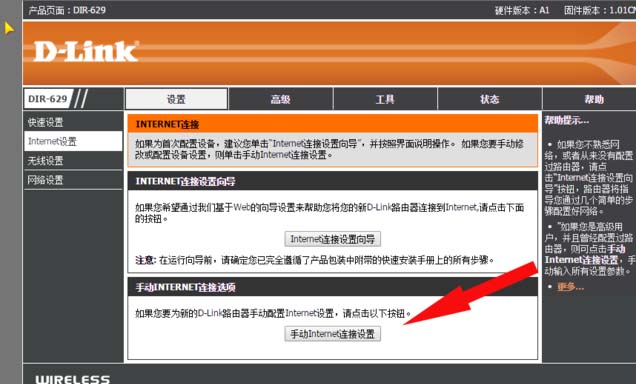 2、登陸管理界面以后點(diǎn)擊右側(cè)有個(gè)高級(jí)網(wǎng)絡(luò)設(shè)置,進(jìn)入Internet設(shè)置頁(yè)面。