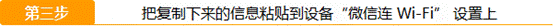 第三步:把復(fù)制下來(lái)的信息粘貼到設(shè)備“微信連Wi-Fi”設(shè)置上
