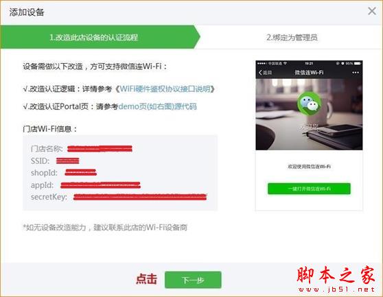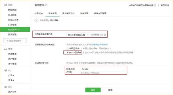 ④設(shè)置微信連Wi-Fi, 并添加設(shè)備
