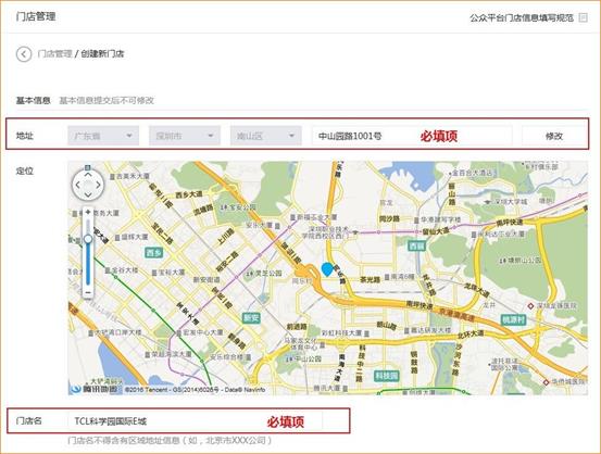 A.填寫店鋪正確的地址信息和店鋪名稱,如下圖所示