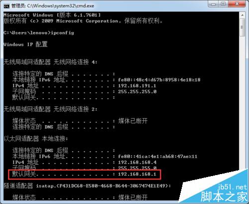 1、我們需要獲取H3C路由器的后臺(tái)Web管理地址。可以通過(guò)H3C路由器設(shè)備背面的信息來(lái)獲取。或者在電腦“MSDOS”界面中,輸入“ipconfig”來(lái)獲取。