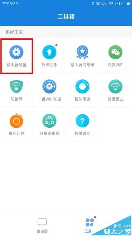 1、路由器的無線中繼是指通過路由器將路由器能夠搜索到的無線網進行信號擴大。首先打開手機上的路由器APP,找到“路由器設置”點擊進入。