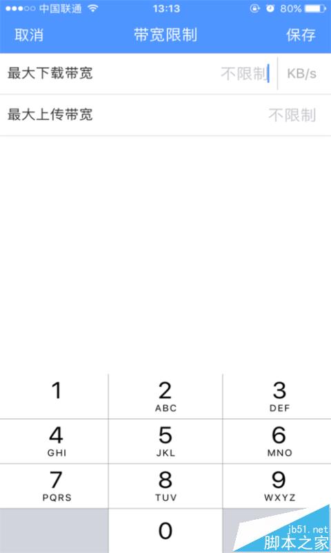 4、限速:點(diǎn)擊“帶寬限制”,設(shè)置“最大下載帶寬”和“最大上傳帶寬”,點(diǎn)擊“保存”