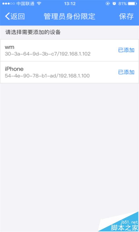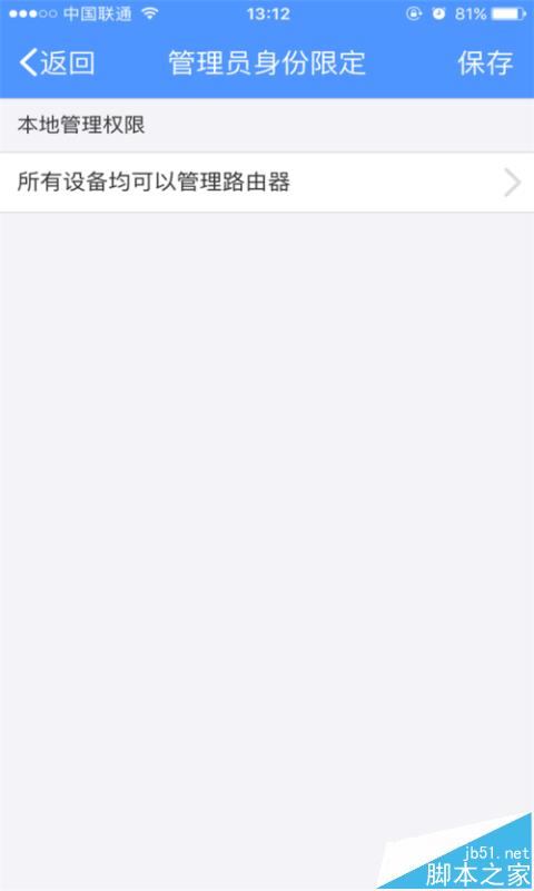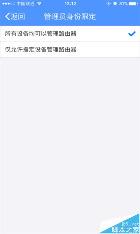 3、點(diǎn)擊“管理員身份限定”,我們可以把自己的特定的設(shè)備設(shè)定成管理員身份,點(diǎn)擊“僅指定設(shè)備管理路由器”,選擇添加的設(shè)備