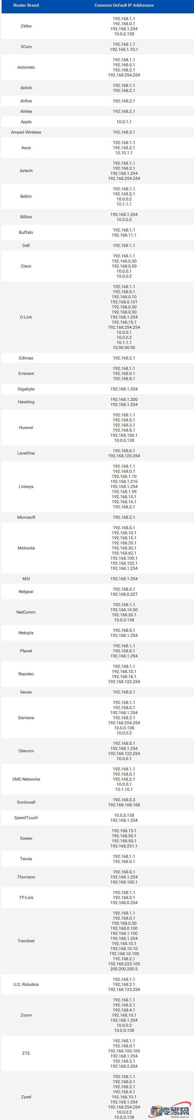 當然,如果你的網絡已經斷開(你的終端無法與路由器ping通,或者路由器的DHCP已經關閉),那么你就需要查詢路由器的默認IP地址,然后為終端設備手工配置同網段的IP地址。那么如何查詢路由器的默認IP地址呢?通常隨機附帶的說明書上會有,但相信大多數用戶的路由器說明書早已找不到了,因此我們特別為大家匯總了一些常見路由器的默認IP地址,希望可以幫助大家快速解決網絡故障。