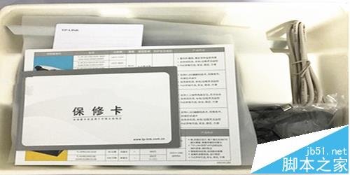2、我們先把最外面一層的盒子打開,然后將最里面的內殼和路由及所有的附件就展現在我們面前了,右側的是藍色路由主體。左下方是電腦與路由相連的數據線,左上方是路由的電源線。慢慢取出來最上面放有的說明書、保修卡、合格證等。