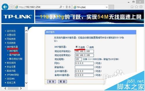 3、進(jìn)入DHCP菜單,手動關(guān)閉DHCP功能,保存成功,重啟路由器待用。